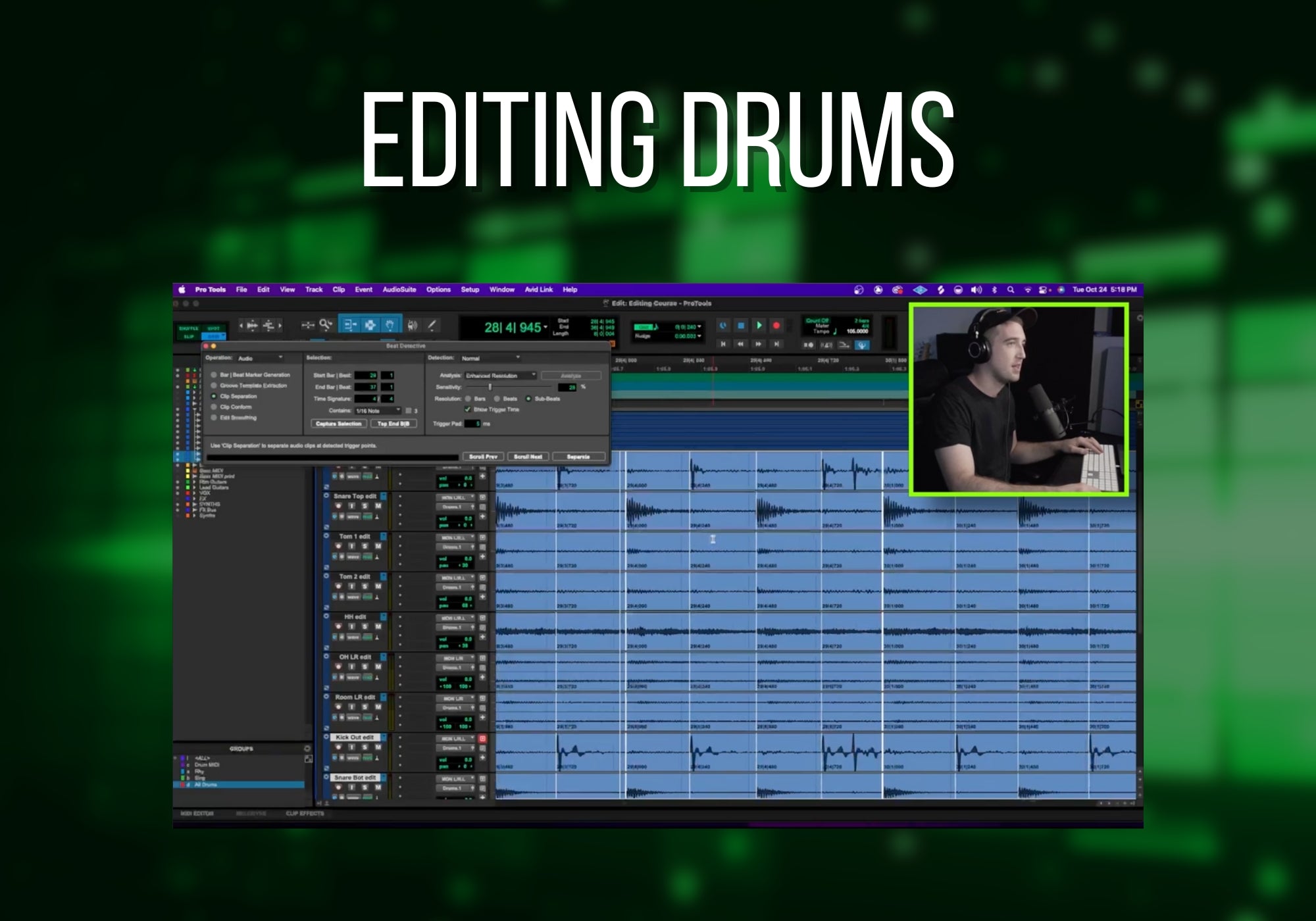 This module covers all things drum editing, and sample replacement via midi! Learn how to edit drums both manually, and with various tools such as beat detective as well as what scenarios are best for each tool in your toolbox!